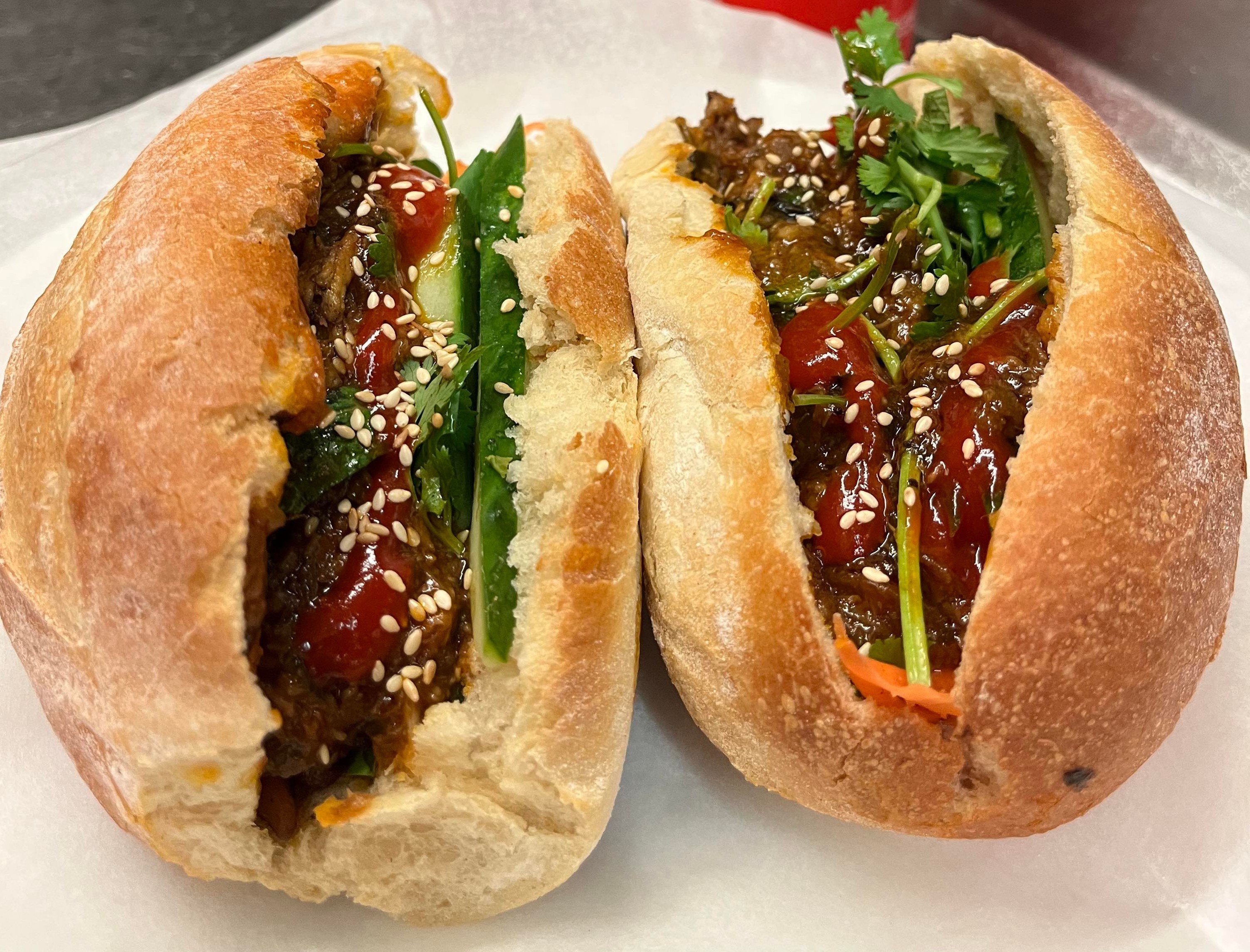 The classic vietnamese baguette, filled with meat or vegan option, cucumber, pickled vegetables, fresh coriander and our home-made sauce, garnished with sesame seed. Choose among the below options:
